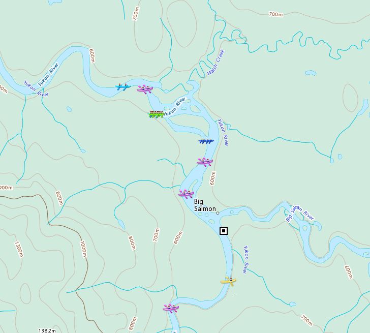 Assuming you could follow the winning team down the river step by step, you probably still won’t have a good track. You could watch the animation to see where the boat goes, but with checkins every 5 minutes, at Yukon speed those locations can be 6km apart. It’s often impossible to know where they were in the shorter river channels.