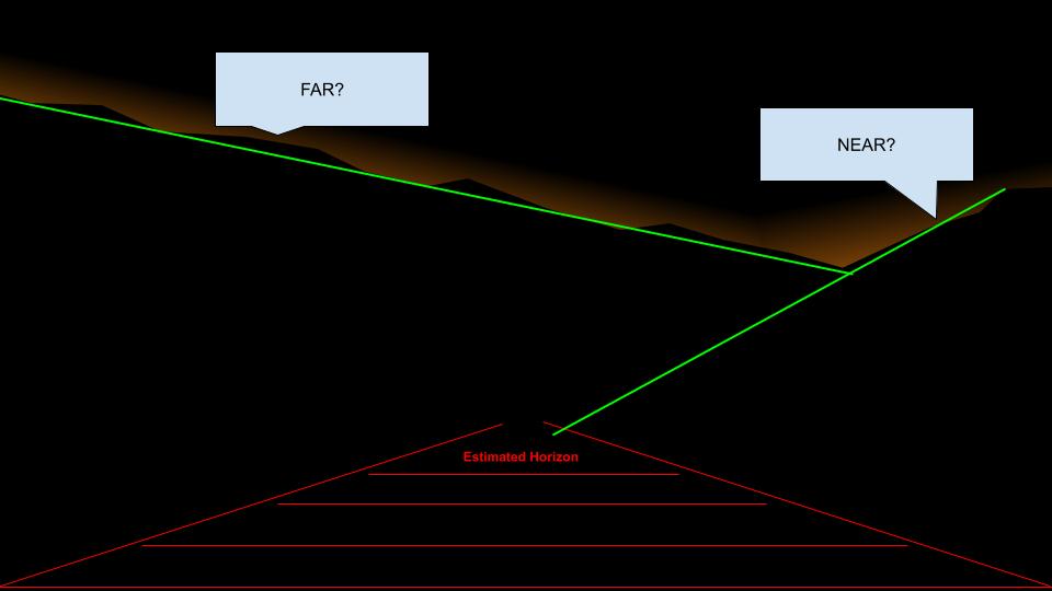 But then something changes… The front cyalume on the right-most boat just winked out of sight. This is where the astronomy comes into play. Not being able to see that light means there is something between that light and your straining eyeballs. We’ve found the end of our outcrop.