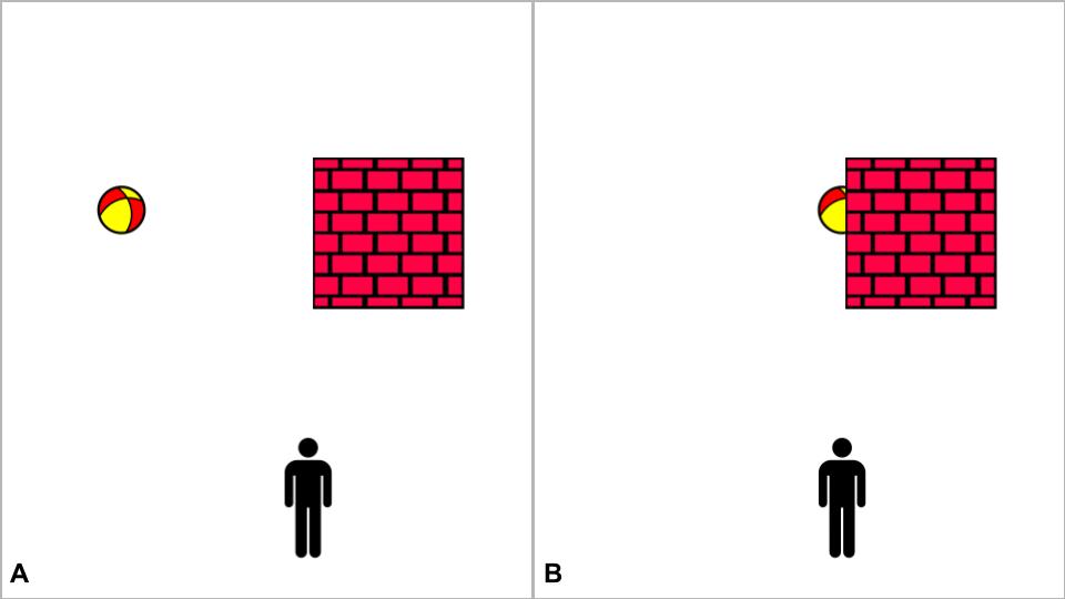 What you’re seeing in the dark is the same effect as the ball rolling behind this wall. If the wall was invisible, the observer would still know where the ball has disappeared.