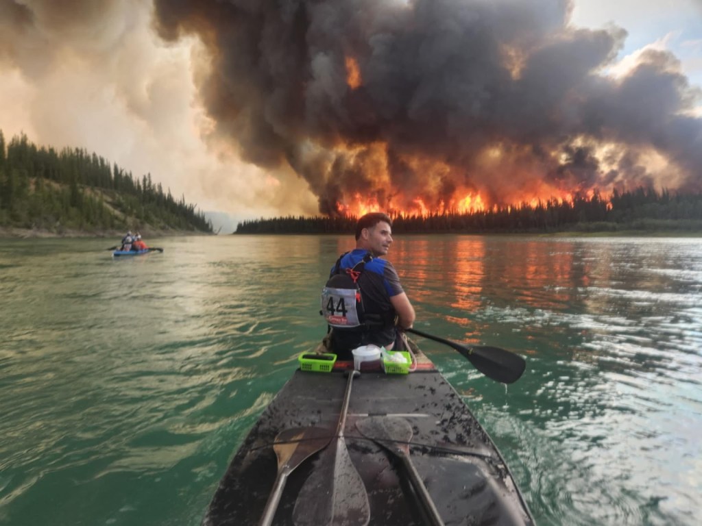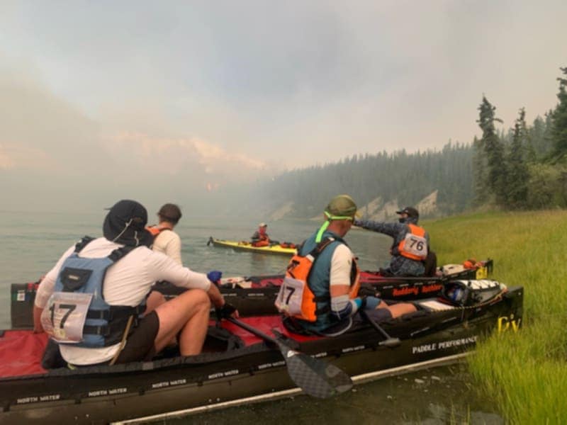We spent most of the week on the edge of our seats checking websites123 that tracked fires and smoke plumes across The Yukon and into Alaska. The River Quest paddlers had come face to face with fires burning on the river banks and by some accounts jumping across the river in front of them. Two particularly vivid photos from the race sparked the most concern…