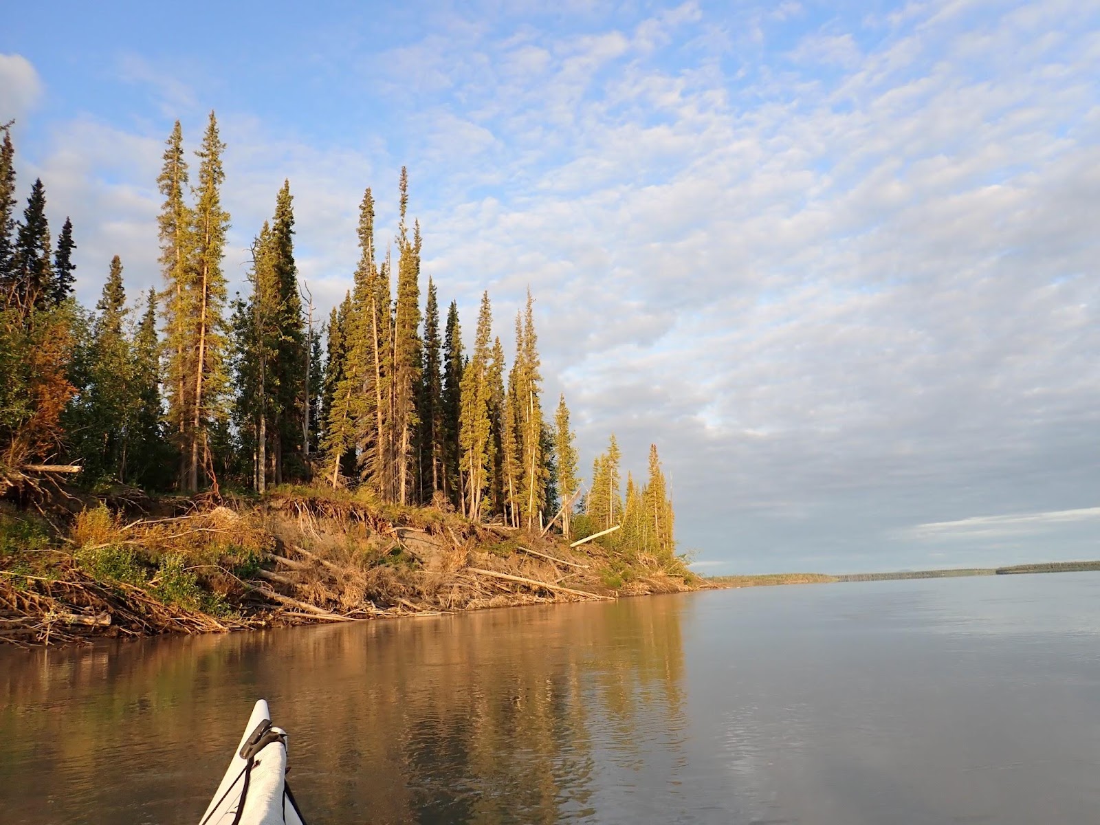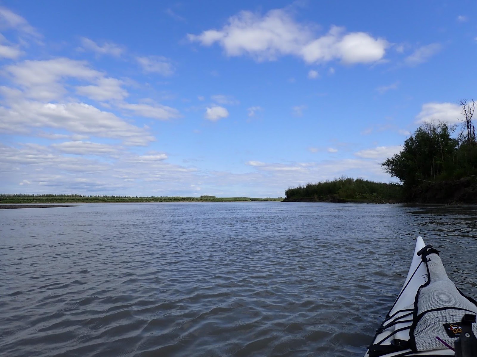 Twenty kilometers short of Stevens Village, we approached Long Point, the last shortcut we’d plotted on our mapping. The river ribbons around a long oxbow, hanging like an uvula2 from the main course of the river. The satellite and topo maps showed a washout that ran through the narrow neck of the oxbow. The course around the loop would be 12.5km, the shortcut was less than 2.5km.