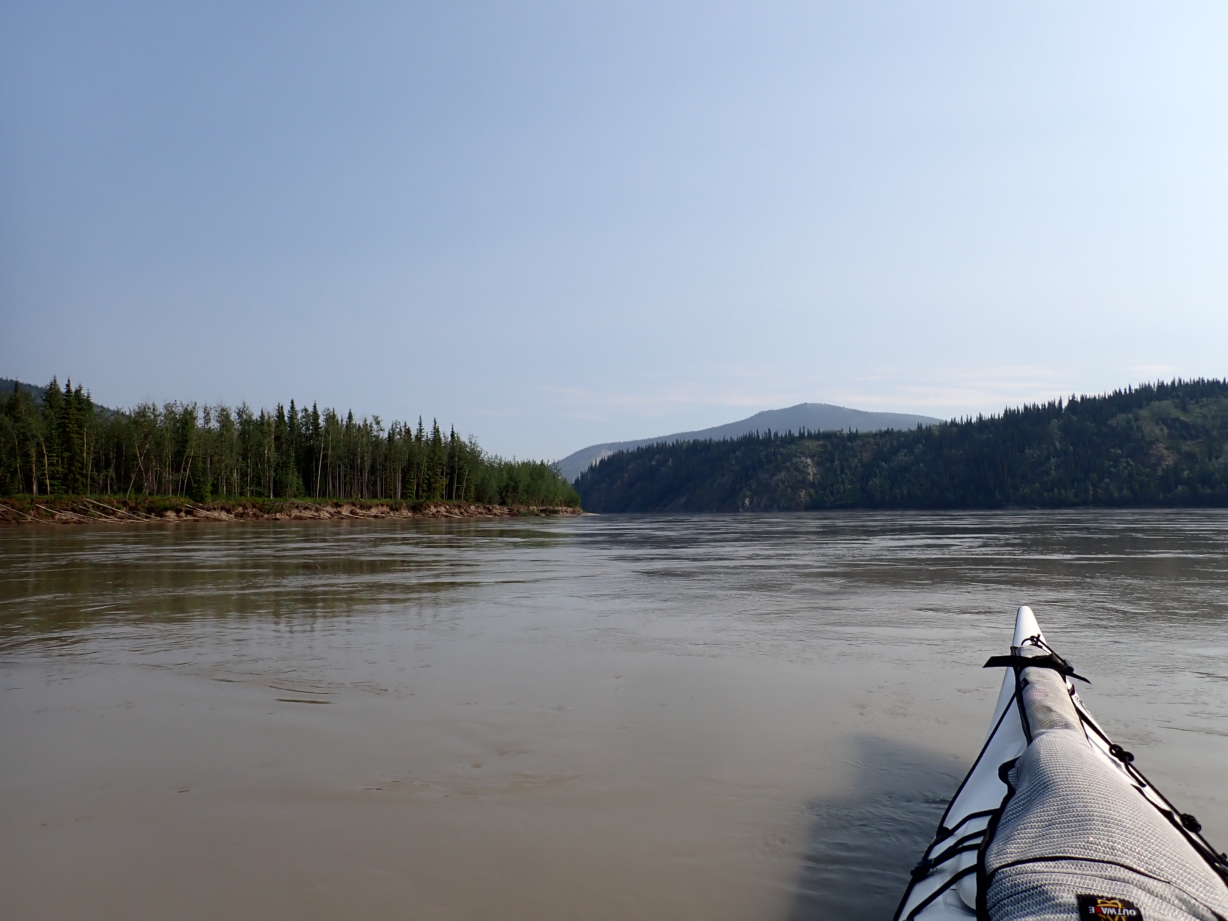 A third fire had rated a mention in the safety briefing. Around 40km past Dawson there was a wildfire burning through an area of what appeared to be scrubland on the northern riverbank. After pointing it out on a map, Jon had suggested the obvious mitigation was to paddle down the other11 side of the river. Seemed like sound advice.