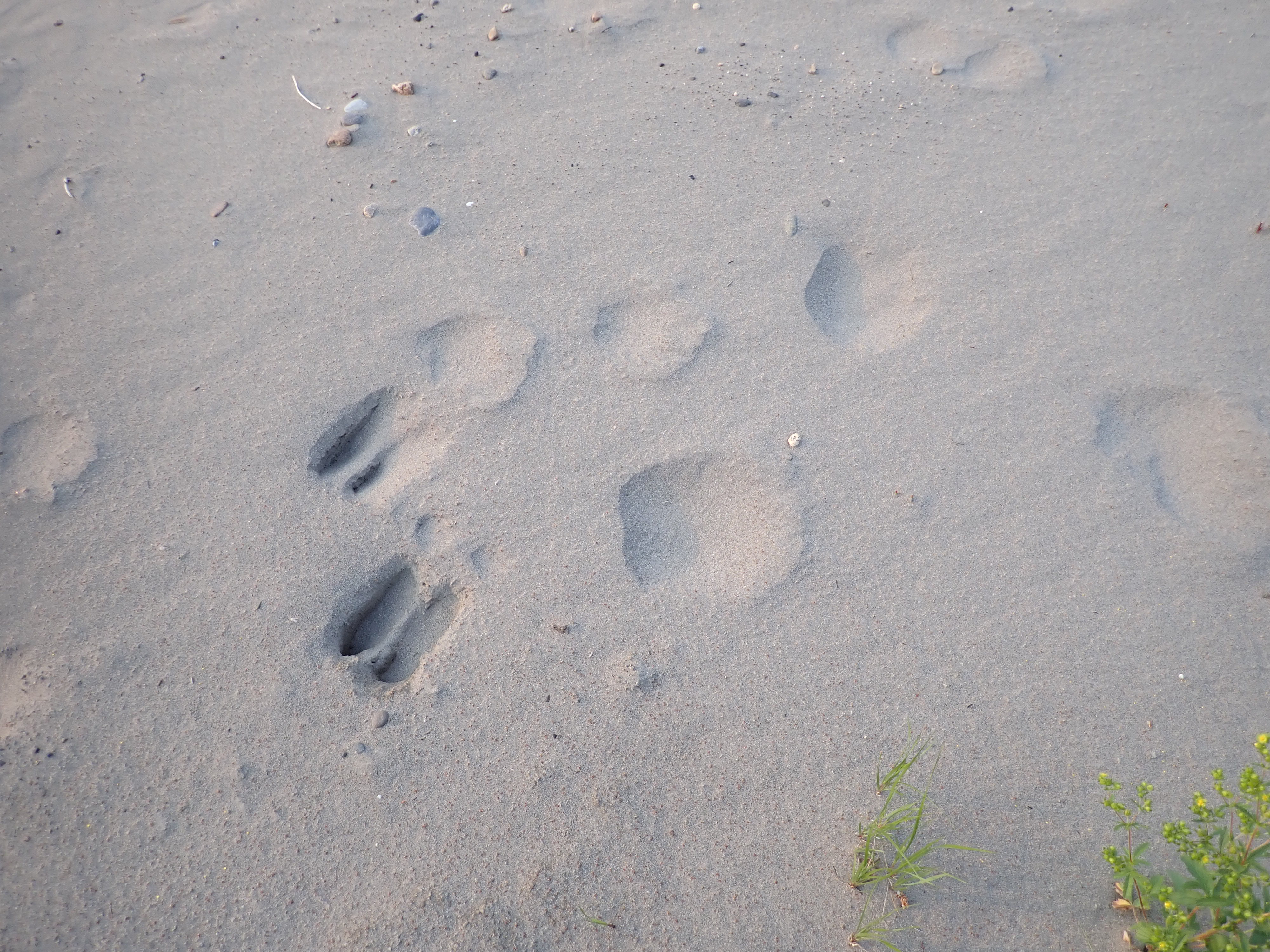 We spent a few minutes debating whether the moose prints traversing our proposed tent site were grounds for relocation – I’ve been told that bad moose encounters are often moose travelling a game path that somebody was naive enough to put a tent on top of14. Then we noticed the other prints. Initially I’d overlooked the big round holes in the sand. 8-12 inches across, they were initially just round holes about 4-6″ deep in the soft sand. Then I noticed that there was a discernable sequence of holes traversing our chosen patch of sand. Looking more closely, I could see signs of claws on the leading edge. They appeared to be a few days older than the moose prints, but they were recent enough to confirm the presence of a sizeable bear on the island. Like the moose prints which came in two sizes, the bear prints also appeared to be two distinct sizes.